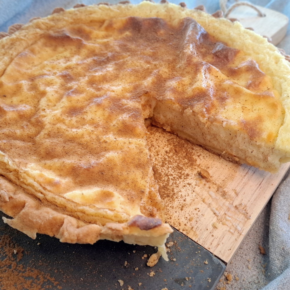 Indulge in the timeless comfort of a traditional milk tart, a beloved South African dessert known for its light, creamy texture and subtle sweetness. Made with a smooth milk-based custard and set in a delicate, buttery crust, this dessert is finished with a gentle dusting of cinnamon for that authentic, nostalgic flavour. Perfect for family gatherings, teatime, or a sweet everyday treat.
